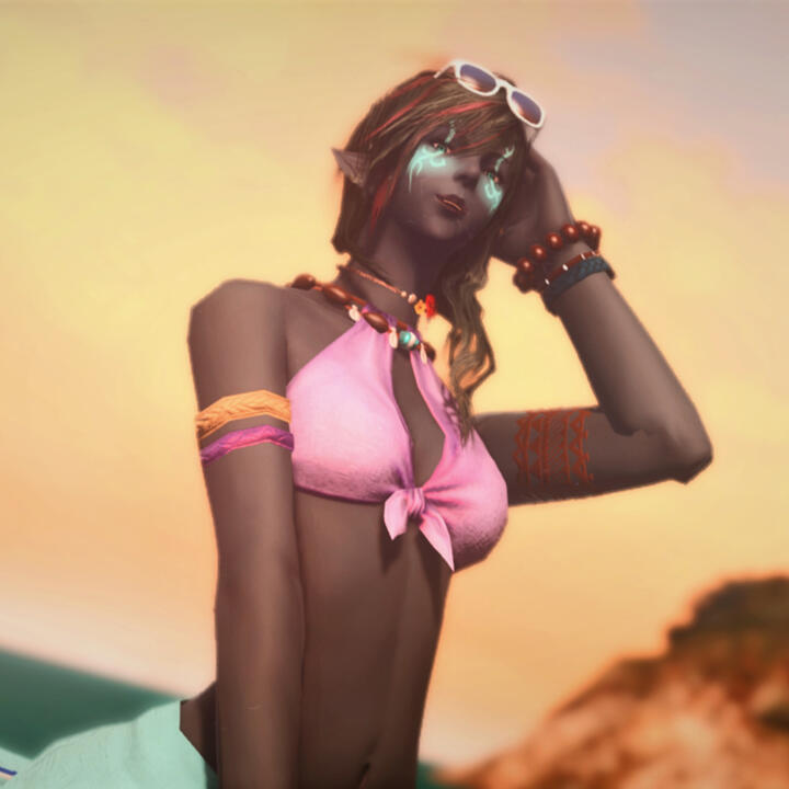 At the age of nineteen, still not quite fully grown by Elezen standards, she set off on her own, heading south towards Ul'dah. With naive dreams to become a famous musician, Wixie was wholly unprepared for the cut-throat city, and she nearly ended up in slavery, were it not for the intervention of a same-age Ala Mhigan refugee who took pity on the young Duskwight. Becoming fast friends, the two women would marry a couple years later. Wixie would go on to join the Ala Mhigan resistance as a healer, until her wife was killed in a skirmish with the Empire.